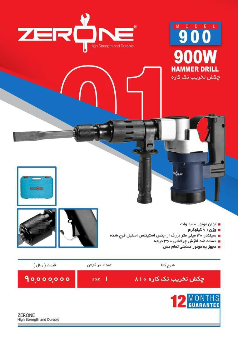 اگر به دنبال یک چکش تخریب صنعتی، بادوام و پرقدرت هستید، مدل 900 Zerone گزینهای بسیار منطقی برای پروژههای ساختمانی و عمرانی است و از لحاظ توان، دوام و کیفیت قطعات یک انتخاب حرفهای محسوب میشود.